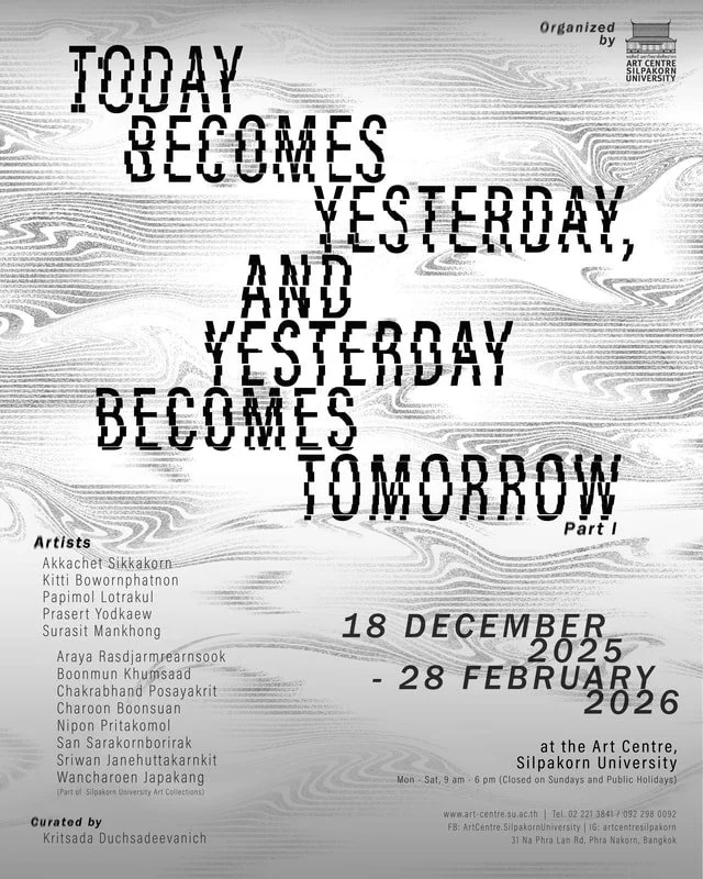 The opening reception is on Thursday, 18 December 2025, at 6.30 pm at the Main Hall of the Art Centre, Silpakorn University (Wangthapra).